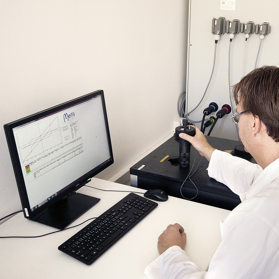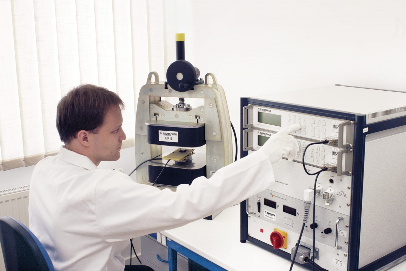 Die angeführten Parameter der Dauermagnete können mittels des Hysteresegraphen, des Magnetometers auf Basis vom Pulsverfahren oder durch andere Methoden gemessen werden. Unsere Labors verfügen sowohl über den Hysteresegraphen (akkreditiertes Labor nach ISO 17025) – standardisierte Methode nach IEC 60404-5 bzw. ASTM A977/A977M, als auch den Magnetometer auf Basis vom Pulsverfahren nach IEC TR 62331, welcher die Messung der inneren Koerzivität HcJ auf allen Typen von Dauermagneten, also auch bei Magneten vom SmCo-Typ (Samarium-Cobalt) ermöglicht, bei denen die Hysterographen nicht in der Lage sind, diesen Parameter bei der Raumtemperatur zu messen. Unsere hochmoderne Ausrüstung ermöglicht es uns auch, diese Parameter von Standard- und komplexen Magnetformen im Temperaturbereich von -40°C bis +220°C zu messen. Bei der Messung der BH-Kennlinie mit der Impulsmethode erreichen wir ein Magnetfeld von Induktion bis zu 7T! Jedoch weder der Hysteresegraph, noch die Magnetometer auf Basis vom Pulsverfahren ermöglichen die Messungen aller Formen, Größen und Arten der Magnetisierung der Dauermagneten. Die Magneten in größeren sowie kleineren Formen und Abmessungen als in denenjenigen, die mit dem Hysteresegraph und dem Magnetometer auf Basis vom Pulsverfahren gemessen werden können, werden durch „Standardproben“ ersetzt, welche aus gleicher Produktionscharge hergestellt sind und so als Repräsentant des Materials des Magneten dienen.